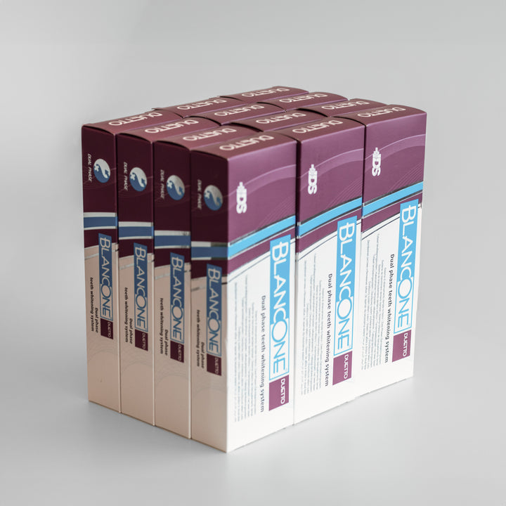 BlancOne® DUETTO on suunniteltu hampaiden valkaisun ylläpitoon ja värjäytymien tehokkaaseen poistamiseen hampaistosta kotona.